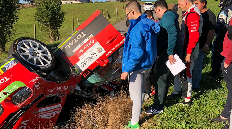 Pero las cosas no le han salido inicialmente como se esperaba en el shakedown celebrado en el tramo de Hermosa, puesto que en una apurada de frenada tenían la mala suerte de volcar, quedando dañada la montura, aunque lo importante es que tanto Puras como su copiloto salieron por su propio pie y sin daños, pero con el lógico susto.