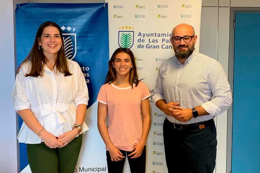 El concejal de Deportes del Ayuntamiento de Las Palmas de Gran Canaria, Aridany Romero, y la concejala de Juventud, Carla Campoamor, han mantenido un encuentro con la promesa del surf Lucía Machado, una joven de 15 años que aspira a convertirse en campeona del mundo en el Campeonato Mundial Junior WSL, que se celebrará el próximo mes de noviembre en Taiwán.