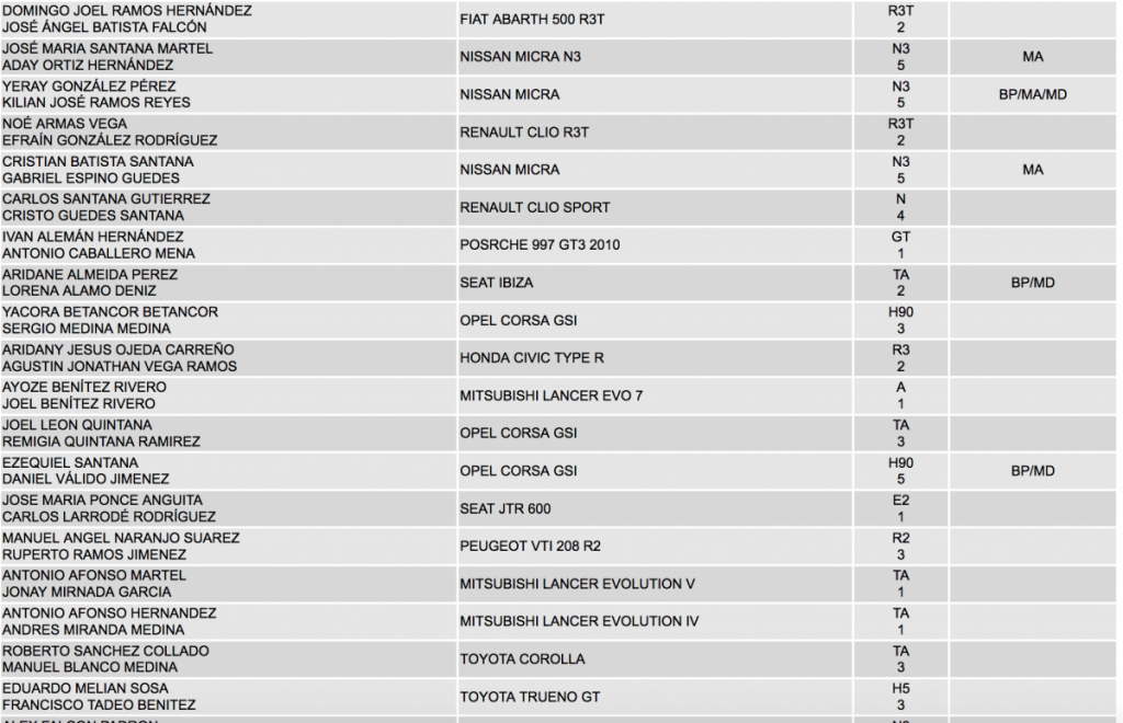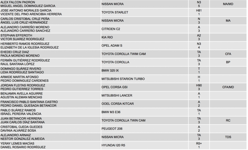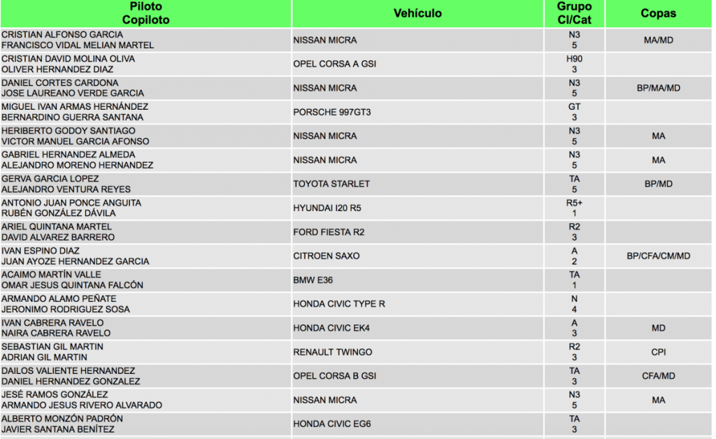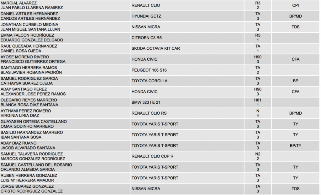 Publicamos la lista provisional de inscritos del Rally de Maspalomas, cita del Campeonato de Las Palmas de Rallys que se disputará el 25 y 26 de Octubre de 2019.