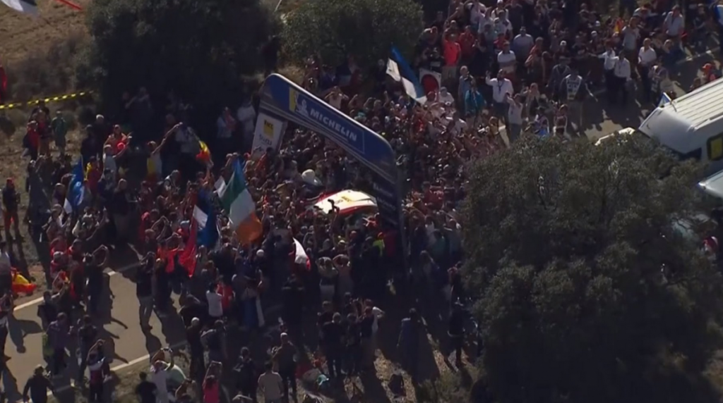 El RallyRACC Cataluña – Rally de España tenía un claro dominio de Hyundai Motorsport en los primeros días, con Neuville, Sordo y Loeb comandando la clasificación, pero el piloto de Toyota Ott Tänak fue escalando posiciones, superando a Loeb el sábado, colocándose tercero y acortando con el segundo puesto, hasta que en la última especial de la cita española logró ser el mejor en el Power Stage y arrebatarle el segundo puesto a Sordo, por lo que acabó tras Neuville y de esta forma logró asegurarse su primer título de campeón del Mundo de Rallys.