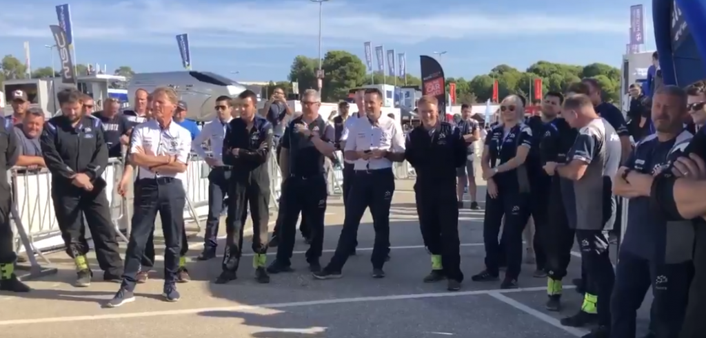 Precioso gesto de deportividad y caballerosidad la mostrada por parte del equipo británico M-Sport con su ex piloto, Ott Tänak, al que esperan y felicitan una vez logrado el título de campeón del Mundo con el equipo Toyota en Cataluña.