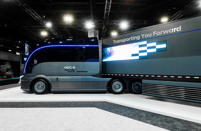 -Hyundai presenta el prototipo HDC-6 NEPTUNE, un camión de servicio pesado Clase 8 propulsado por hidrógeno.