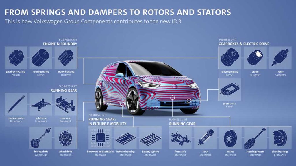 “Alemania debe impulsar el cambio y lograr la excelencia en toda la cadena de valor de la movilidad eléctrica. Este es el motivo por el cual estamos produciendo vehículos eléctricos en Alemania, y también la razón por la cual, en paralelo, hemos tomado la decisión de desarrollar y fabricar motores eléctricos y celdas y sistemas de baterías. En los próximos años, se establecerá en Alemania un importante clúster para vehículos eléctricos”, dijo el consejero delegado de Volkswagen, Herbert Diess. Además de la fabricación en la planta de Zwickau, las plantas de Componentes en Brunswick, Kassel, Salzgitter y Wolfsburg también están involucradas en la producción del ID.3. Está previsto que las plantas de fabricación de automóviles en Emden y Hanover empiecen a fabricar vehículos eléctricos a partir de 2022. En paralelo, el Grupo también coopera con Northvolt para construir una gran fábrica de celdas de batería en Salzgitter.