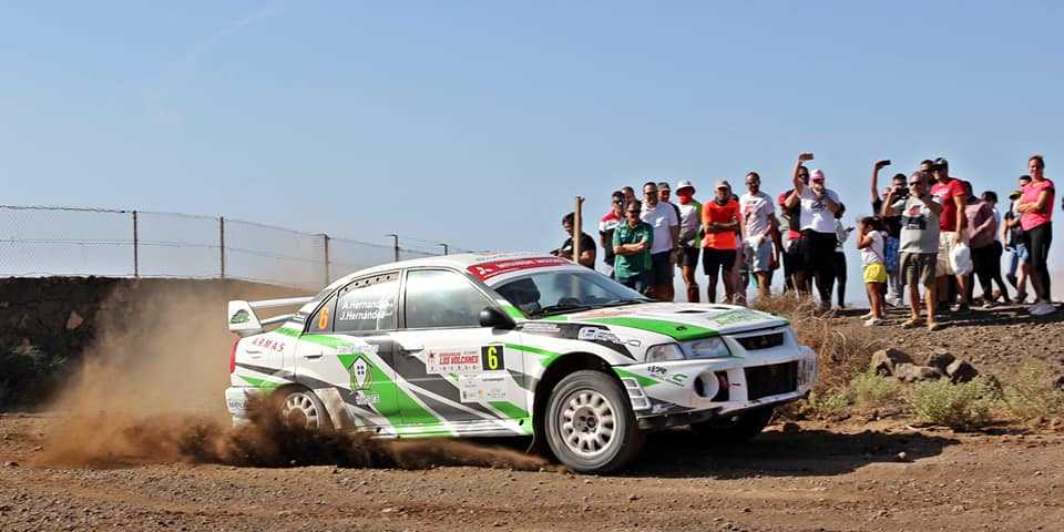 Los majoreros Anibal Hernández y Jonathan Hernández, padre e hijo, llevaorn su Mitsubishi Lancer Evo VI a la sexta posición del Rally Isla de Los volcanes (Lanzarote).