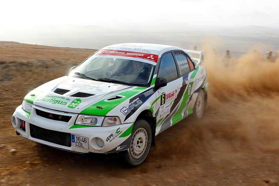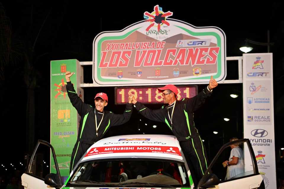 Los majoreros Anibal Hernández y Jonathan Hernández, padre e hijo, llevaorn su Mitsubishi Lancer Evo VI a la sexta posición del Rally Isla de Los volcanes (Lanzarote).