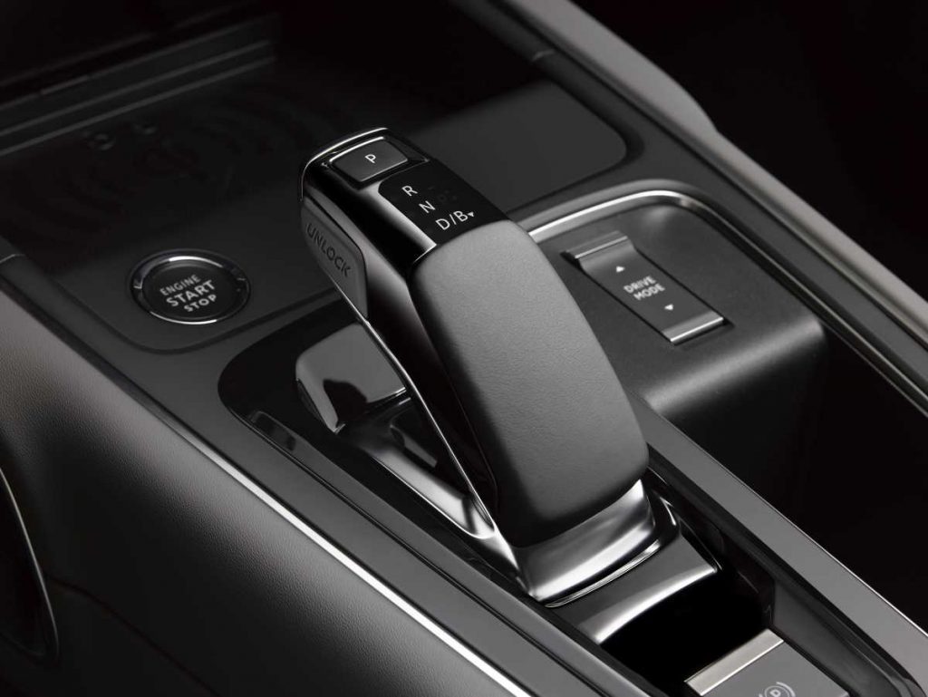 - La consola central cuenta con un selector de modo a la derecha de la palanca de la caja automática que ofrece a la persona que conduce la posibilidad de escoger entre diferentes modos de tracción por la acción combinada o disociada de las energías térmica y eléctrica: Electric (ZEV) que prioriza el silencio y la fluidez, Hybrid para aunar polivalencia y eficiencia o Sport para el dinamismo. Por defecto, la gestión entre el motor eléctrico y el motor térmico se realiza automáticamente en función del nivel de carga de la batería y la demanda de la persona que está al volante.
