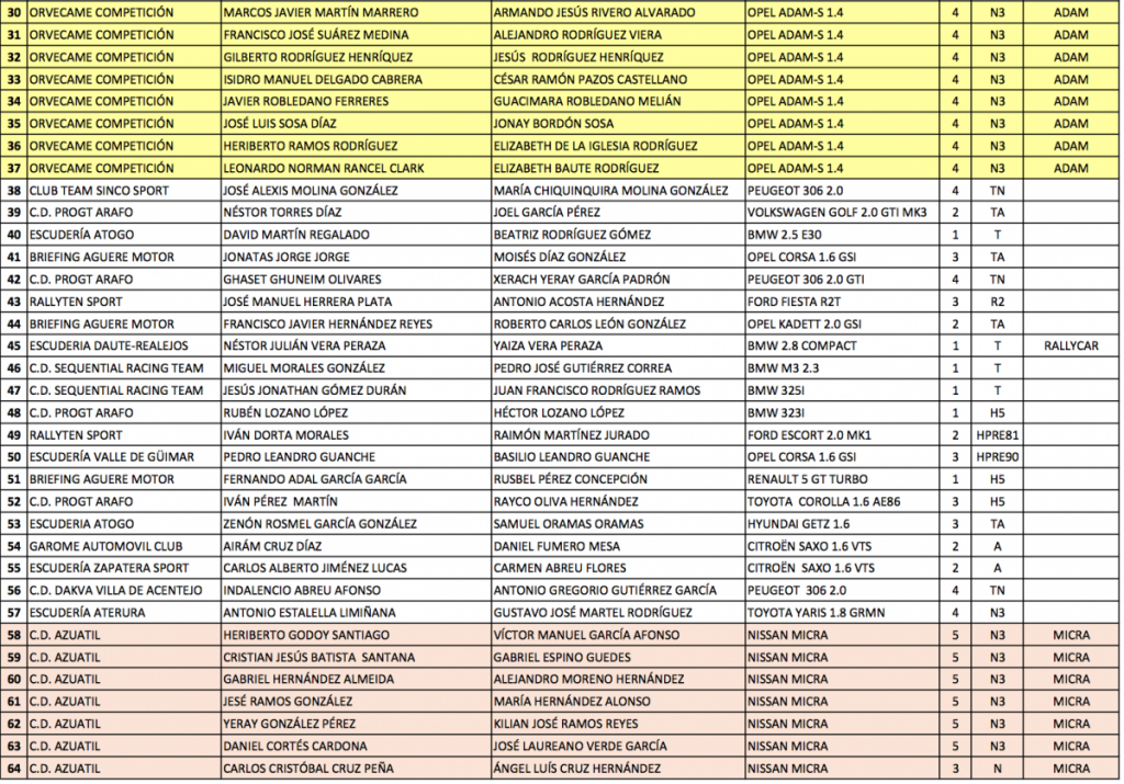 Cabe también recordar que esta cita del Campeonato de Canarias de Rallyes es tanto velocidad como Regularidad Sport, así como las Copas Monomarca Copa Adam, Nissan Micra; Copas 1.6, Challenge Rallycar, Pirelli, Hankook y Michelin.