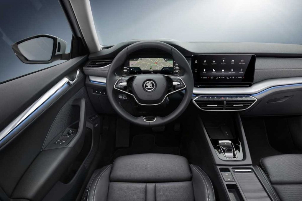 El salpicadero se rediseña completamente hacia una forma modular y se organiza en distintos niveles, la gran protagonista pasa a ser la gran pantalla central independiente. La marca introduce en el nuevo OCTAVIA una elegante consola central adornada con detalles cromados. Los nuevos materiales, con texturas suaves, le dan al interior un aspecto premium, mientras que la nueva iluminación ambiental LED, que se podrá equipar de manera opcional, proporciona un toque visual especial en las puertas delanteras y en el panel de instrumentos, iluminándolos de forma indirecta con una selección de 10 colores distintos.