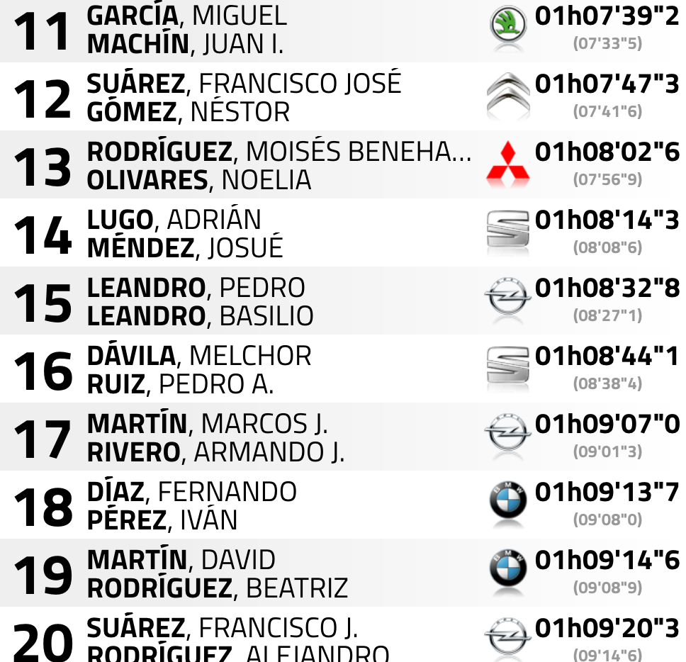 De esta manera Lemes y Peñate pasan a liderar la general con 0.2 de ventaja y tendrán dos tramos en la mañana de este domingo para poder certificar su triunfo. Además, tendrán que ser fuertes en la primera especial de la jornada, Los Campitos (8,400 metros), que será TC Plus, con lo que son unos puntos añadidos claves de cara a su lucha por el título que se tendrá que decidir en su tierra, en el Rally Isla de Lanzarote.