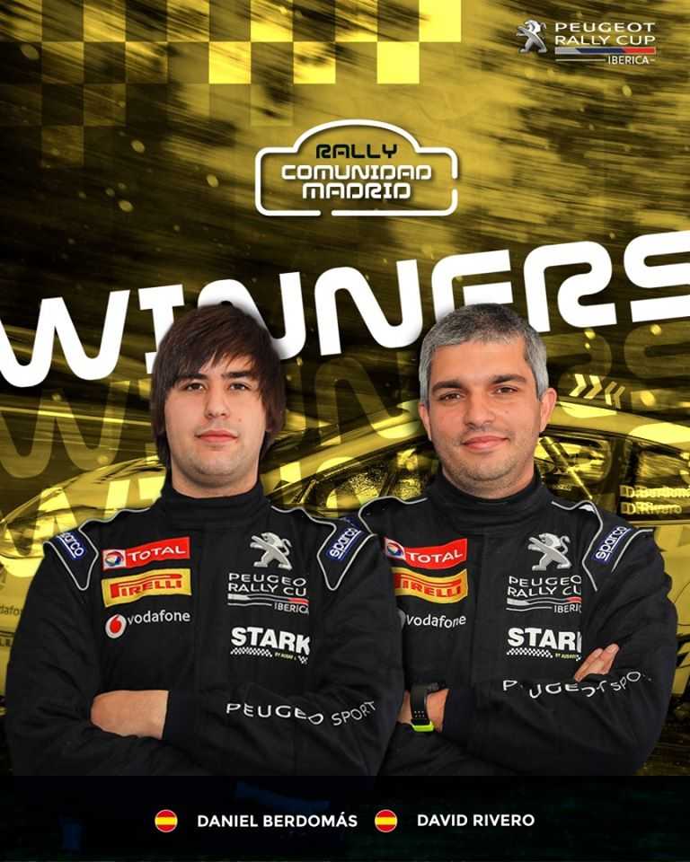 Extraordinario epílogo el que pusieron este sábado en Madrid Daniel Berdomás y David Rivero, que con los títulos de pilotos y copilotos respectivamente de la Copa Peugeot Ibérica ya conseguidos desde la prueba anterior, finalizaron en la última de la temporada con otra victoria, la cuarta en los seis rallyes disputados del calendario.