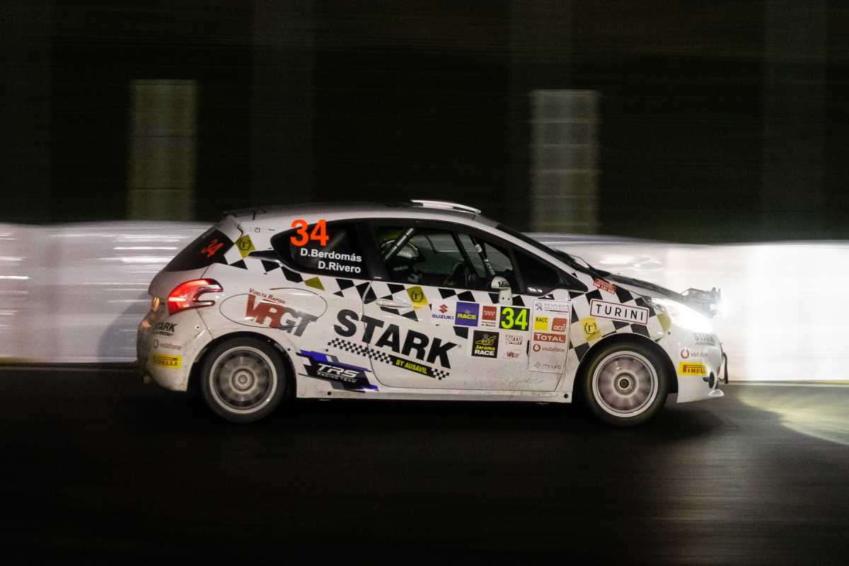 El Rally Comunidad de Madrid – RACE estaba formado por dos etapas, siendo la primera del viernes la única que contaba con tramos en carretera, pues el resto se desarrollarían en el Circuito del Jarama. Bajo unas condiciones atmosféricas realmente complicadas y con el asfalto muy deslizante a lo que se unía la baja temperatura, Daniel Berdomás y David Rivero lograban marcar el mejor tiempo en el Puerto de La Puebla con su Peugeot 208 VTi R2. La sexta plaza del siguiente, El Berrueco, les situaba en una segunda posición en la que se mantendrían hasta el final de esta primera jornada, clasificándose segundos en la repetición de ambas especiales y en el Circuito del Jarama, con el que concluía esta jornada.