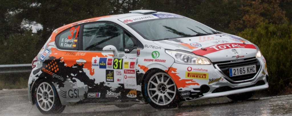 Las extremas condiciones meteorológicas de la jornada del viernes en el Rallye RACE Comunidad de Madrid, serán recordadas por muchos participantes, entre ellos Santi García y Néstor Casal, que veían como, tras superar la parte más complicada de la primera especial de la sierra madrileña, se quedaban fuera de carretera con su Peugeot 208 R2 tras hacer aquaplaning a falta de pocos metros para cruzar la meta.