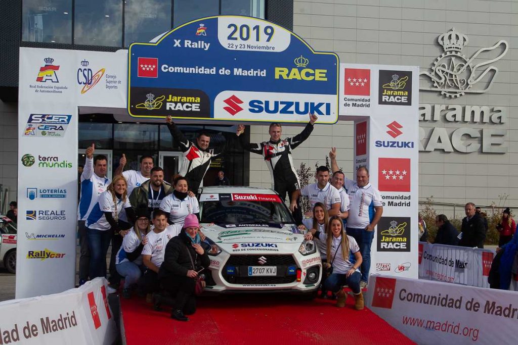 La estructura dirigida por Víctor Pérez afrontaba el último compromiso también dentro de la Copa Suzuki Swift, dentro de la cual los cántabros Óscar Sarabia y Juan Antonio Dertiano acudían a los tramos madrileños sin ningún tipo de presión tras sellar el título en el pasado Rallye La Nucía. Pese ello, no desaprovecharon en absoluto la oportunidad de poner la guinda al pastel, y sobre las delicadas condiciones de la etapa del viernes, en los tramos de la Puebla y el Berrueco, fueron fraguando un liderato que supieron conservar hasta un final, marcado por las distintas configuraciones tanto de asfalto, como mixtas de tierra y asfalto en el trazado del Jarama.