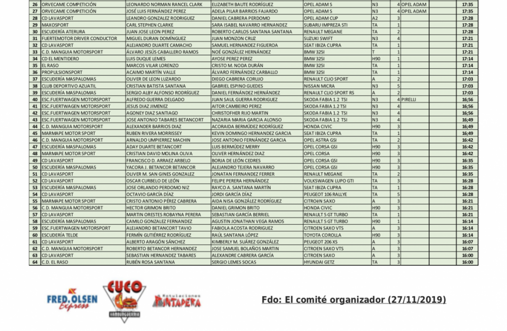 No debemos olvidar a la Copa Opel Adam Disa Max del equipo Orvecame Competición, el patrocinador principal del evento, donde se están jugando los puestos finales para resolver el premio del más regular del año. Agradecer a todos los protagonistas su participación, esperando por parte de la organización que se respeten las reglas del juego para terminar la temporada.
