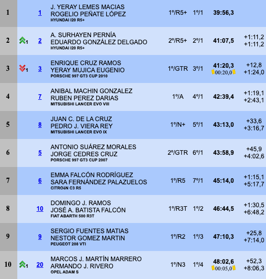 Iván Armas llegaba a Lanzarote con el provincial prácticamente en el bolsillo, pero una avería en la bomba de gasolina le obligó a abandonar tras el tramo 8 en San Bartolomé. Esto posibilitaba que el propio Yeray Lemes y Rogelio Peñate se colocaran en primera posición del provincial de Las Palmas, para llevarse junto al regional también el campeonato.