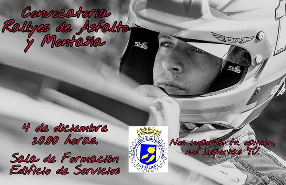 – Rallyes de Asfalto y Montaña el próximo miércoles 4 de diciembre a las 20.00 horas en la Sala de formación del edificio de servicios, en el Estadio de Gran Canaria.
