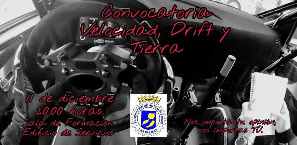– Circuito de Velocidad, Drift y Tierra el miércoles 11 de diciembre a las 20.00 horas en la Sala de formación del edificio de servicios, en el Estadio de Gran Canaria.