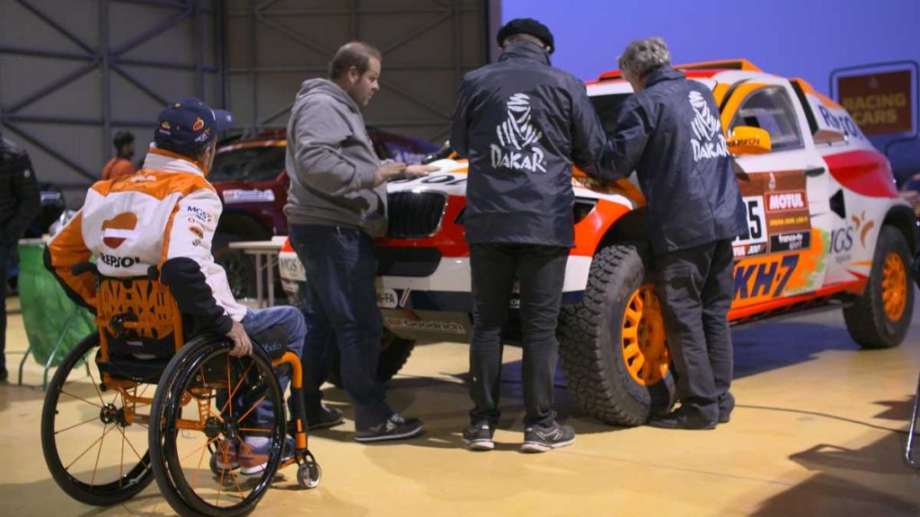 Antes de embarcar hacia el Mar Rojo, todos los equipos deben someterse a las obligadas verificaciones técnicas en el Circuit du Castellet. El prototipo del Repsol Rally Team, con motor BMW 3 litros biturbo diésel de 340 CV, chasis tubular, cambio secuencial, mandos adaptados en el volante por Guidosimplex y neumáticos BFGoodrich, ha cumplido el trámite sin problemas.