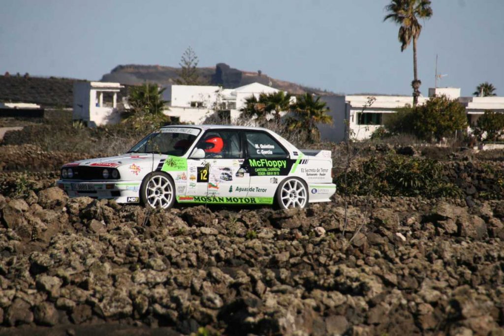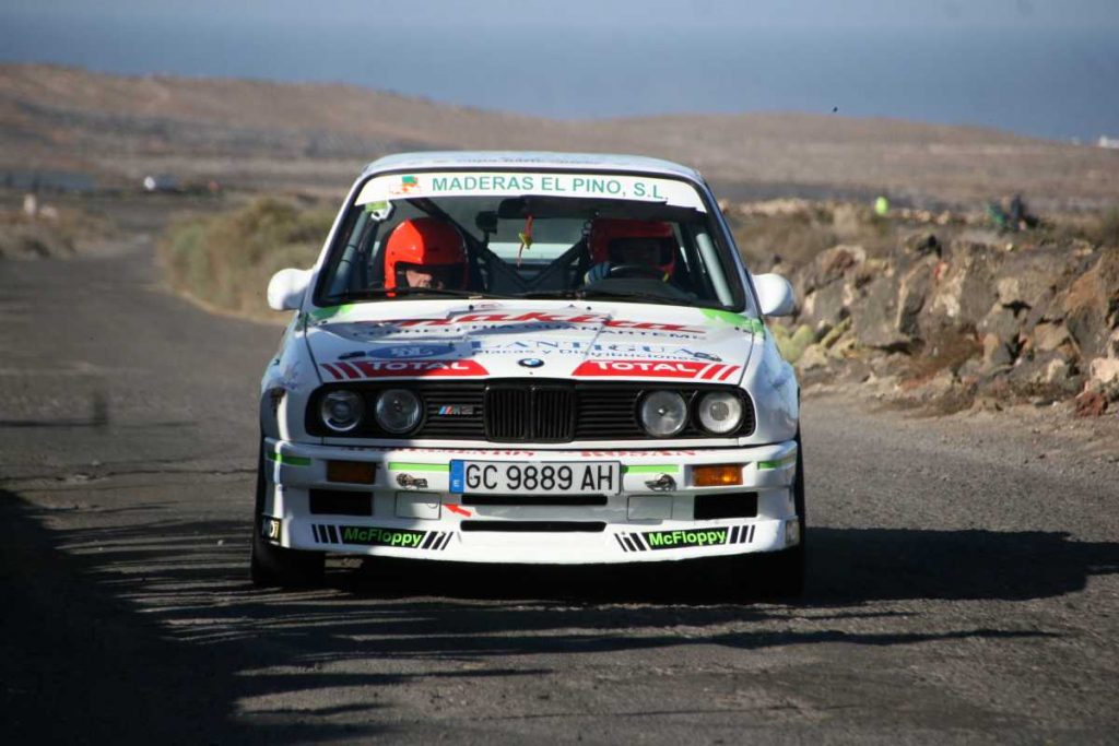 Miguel Ángel Quintino – Carlos García con su BMW M3 llevando las publicidades de Maderas el Pino, Makita ferretería Guanarteme, Cafetería Churrería Mcfloppy, 3MG Motor, Piscolabis Majocaya, Chapa y Pintura Carlos, Placas y Distribuciones Lantigua, Total, Restaurante el Secreto de Teror, Refrigerantes Duque, Silenciosos El Calero, Desguaces Felix, Orión grupos Insulares, Carslot Design, Rótulos Flexographic, Aguas de Teror terminarían los 80,28 kilómetros de pruebas especiales con mejor entusiasmo al lograr su objetivo con ese gran resultado en la clasificación general del Campeonato de Rallyes Asfalto de Las Palmas.