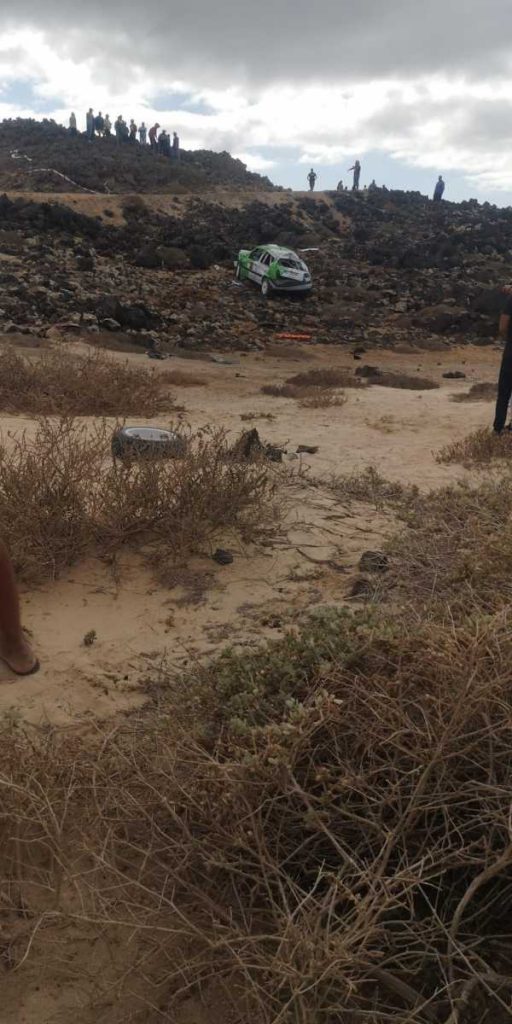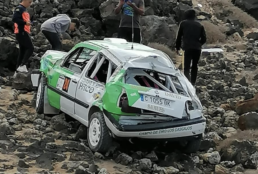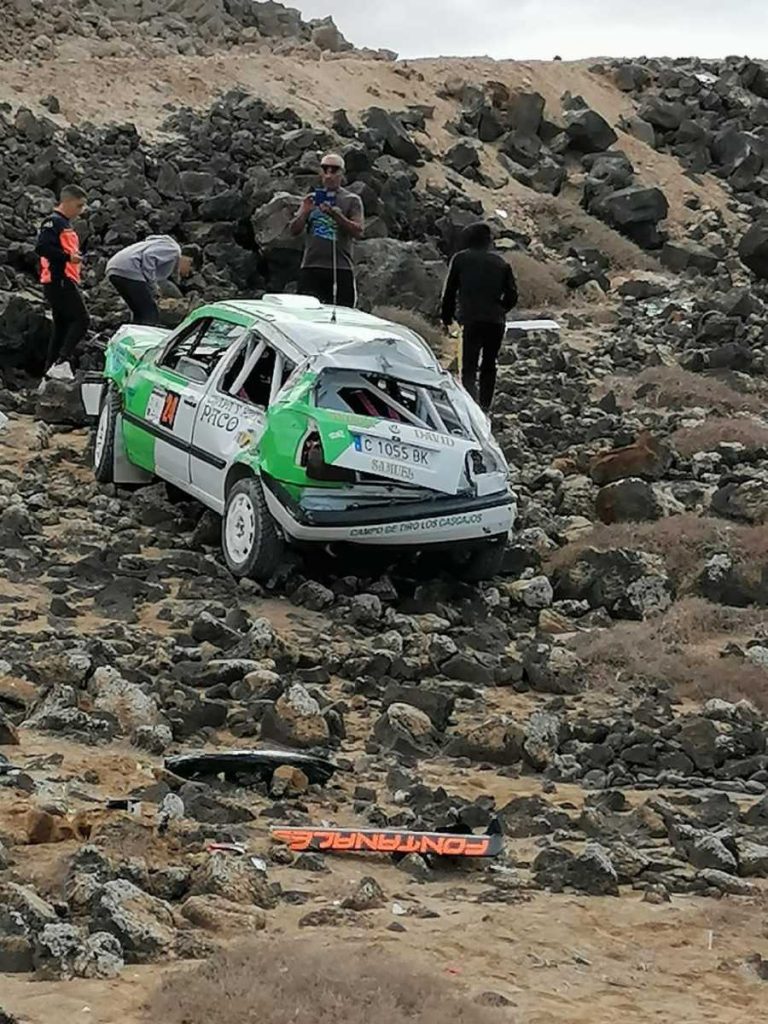 Muy mala suerte la que tuvieron Anastasio J. Silvera e Idaira García en el Slalom de Majanicho (Fuerteventura) al sufrir una aparatosa salida de carretera. Por suerte, todo quedó en un gran susto.