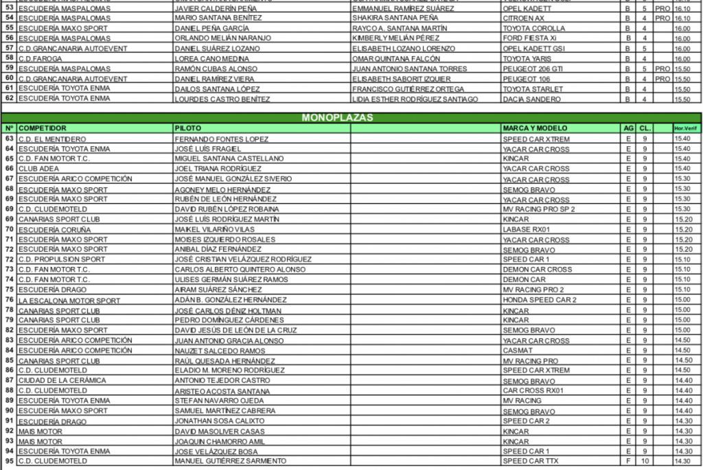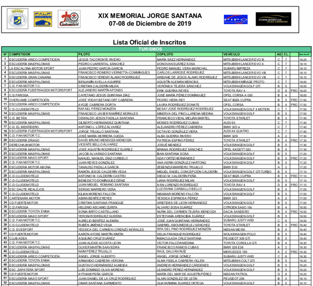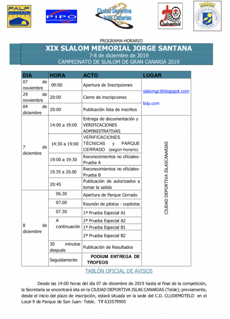 Publicamos la lista de Inscritos y el programa horario del Slalom Memorial Jorge Santana, que se celebrará este domingo en el Circuito Islas Canarias de Telde.