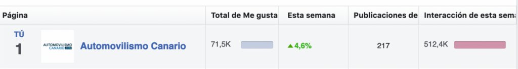 Una semana después de la cita de la última prueba del Regional de Rallys de Asfalto de la temporada 2019 hemos logrado 1500 nuevos seguidores en la página de Facebook, llegando a los 71.500 y las 512.000 interacciones, quedando constatado que no nos paramos a disfrutar de lo logrado y seguimos publicando contenidos que son del interés de lectores y seguidores.