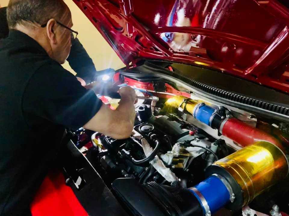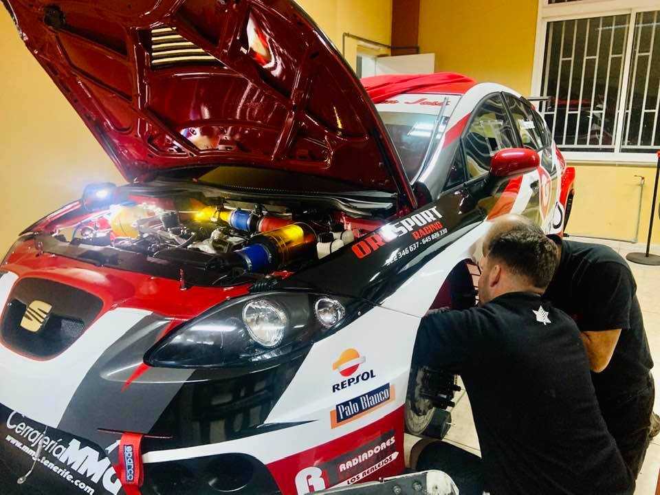 El piloto tinerfeño ya piensa en la próxima temporada y por eso revisa su unidad.