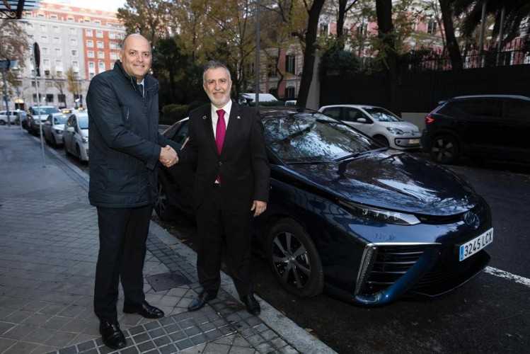 - Ángel Víctor Torres recibió para la ocasión el primer Toyota Mirai matriculado en España.