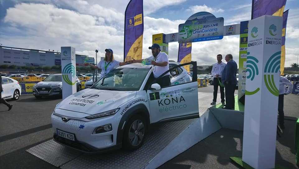 Los actuales campeones de España de Energías Alternativas de Vehículos Eléctricos, pareja formada por Txema Foronda y Pilar Rodas, de la escudería HYUNBISA (grupo ORTASA), a los mandos de un Hyundai Kona EV, se proclamaron Vencedores del primer ECO Rallye Isla de Gran Canaria de España de Energías Alternativas.