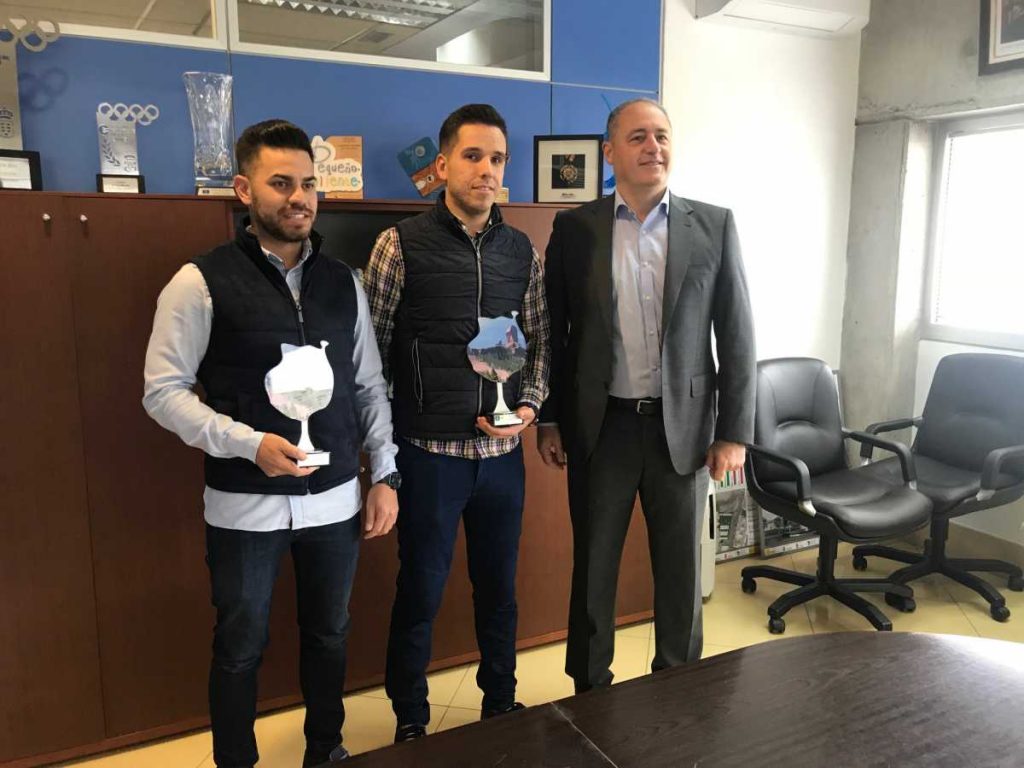 Alejandro Martín y Kevin Peñate, apoyados por el consejero de deportes del Cabildo de Gran Canaria, Paco Castellano