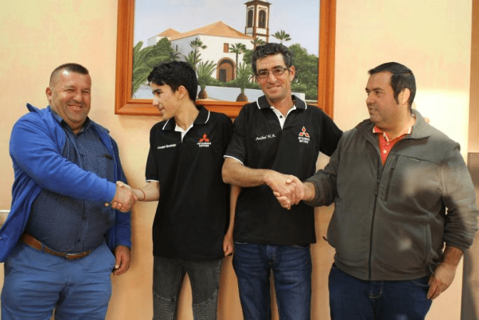 El alcalde de Antigua, Matías Peña y el concejal de Deportes, Fernando Estupiñán en nombre de toda la Corporación Municipal de Antigua, felicitan al equipo conformado por padre e hijo, Aníbal y Jonathan Hernández, piloto y copiloto, Campeones de Canarias de Rallyes de Tierra.