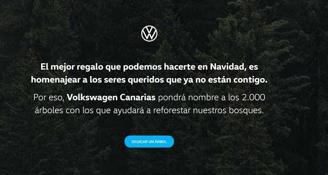 “Abuelo, mamá, papá, abuela… Sin ellos, la Navidad es menos Navidad” Con este mensaje Volkswagen Canarias quiere homenajear a todos esos seres queridos que ya no están con nosotros con un regalo muy especial: poner sus nombres en uno de los 2.000 árboles con los que la marca ayudará a reforestar los bosques canarios.