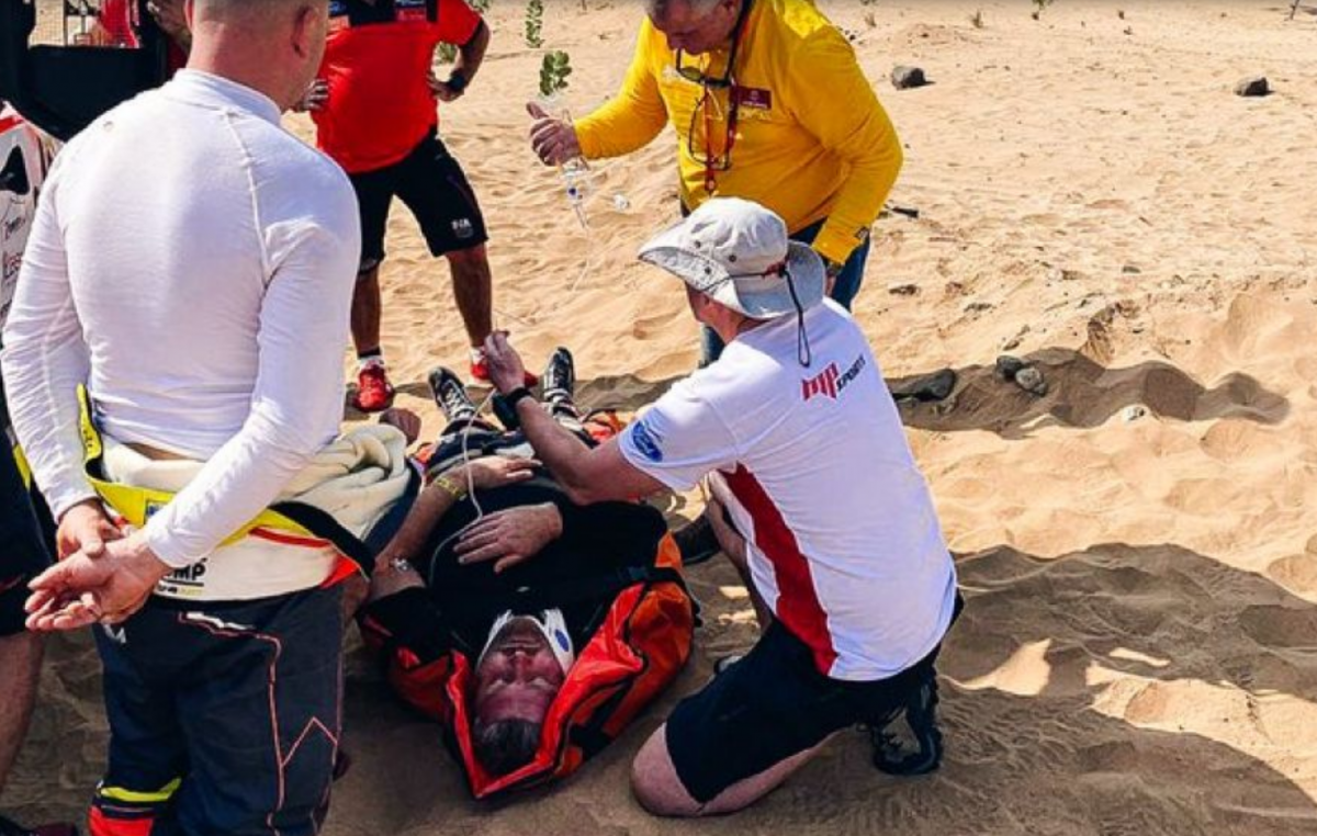 Y ha sido precisamente en esta primera toma de contacto donde el piloto checo se ha quedado sin opciones tras una fuerte caída de morro con su Ford Raptor. El piloto tuvo que ser atendido en el mismo lugar y trasladado a un hospital junto a su copiloto.