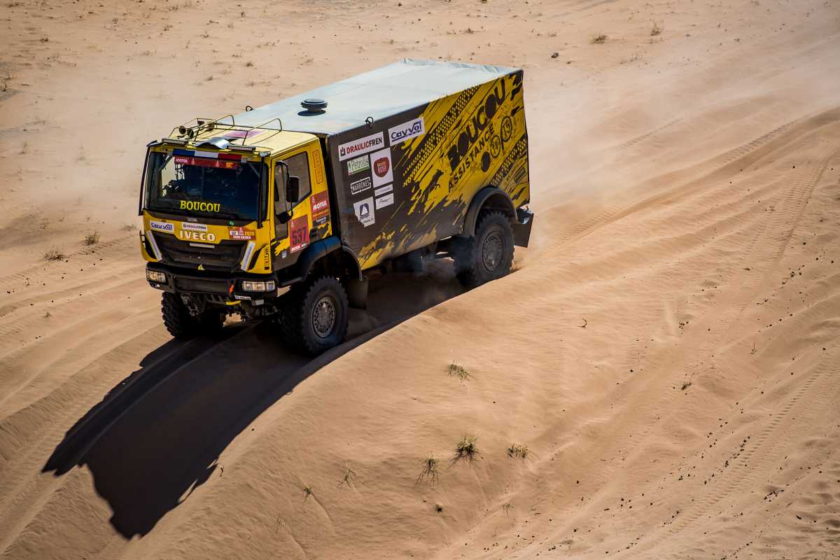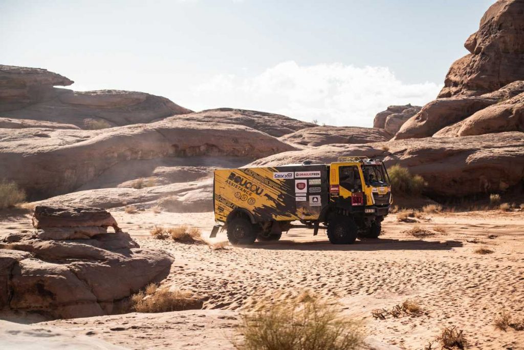 En una jornada con 427 km cronometrados, con salida y llegada a la ciudad de Neom, el piloto del Team Boucou se ha tenido que sobreponer a este susto para poder continuar en carrera. El incidente ha dañado mínimamente su Iveco, lo que le ha permitido continuar sumando kilómetros hasta alcanzar el ecuador de la etapa. En ese momento, con un buen ritmo y recuperando el terreno perdido, pese a rodar sin la luna delantera de su camión, ha tenido que volver a detenerse en la pista para dar asistencia a uno de los equipos con los que colaboran.