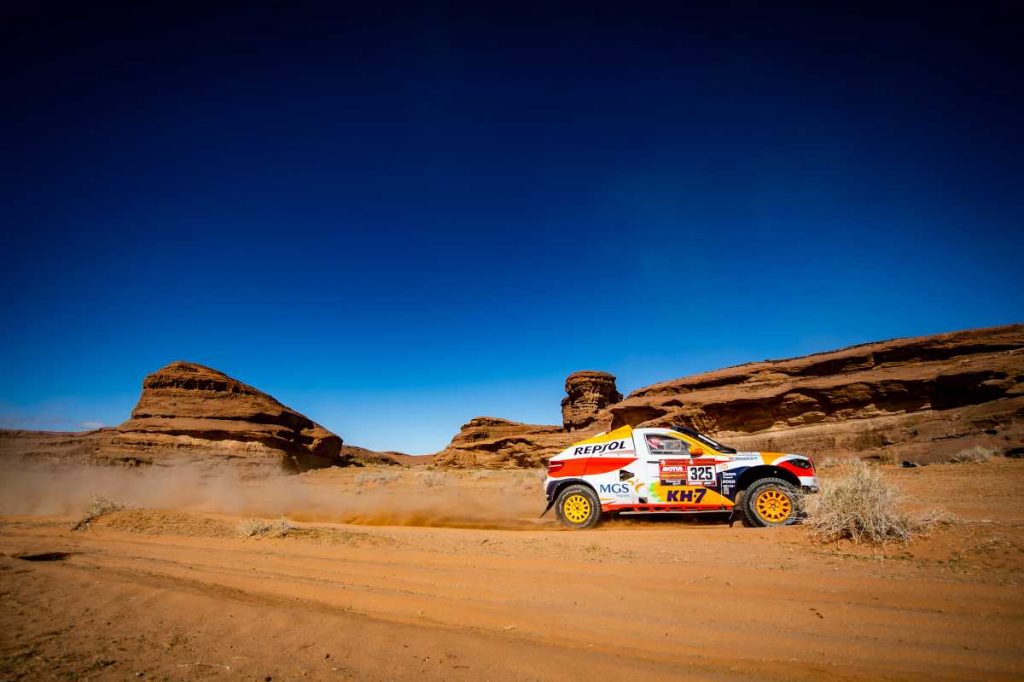 Tras volver a poner en pie su 4×4, con la ayuda del holandés Maik Willems y su Toyota Hilux, y comprobar que, aparentemente, los desperfectos eran mínimos, el Repsol Rally Team lograba reincorporarse a la carrera 20 minutos más tarde. “Por suerte, todo ha quedado en un buen susto y no nos hemos lesionado”, apuntaba con alivio.
