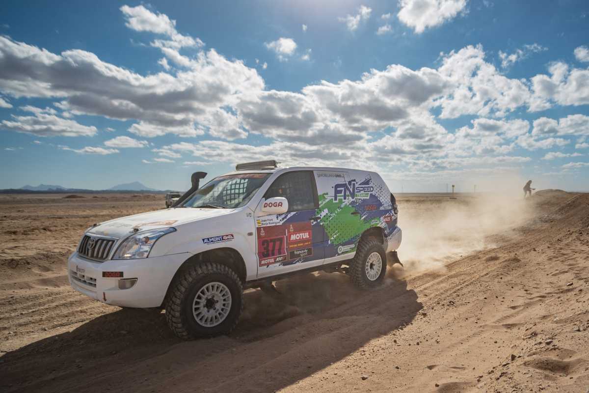 En la cuarta etapa entre Neom y Al Ula, de 672 kilómetros (453 cronometrados), el Toyota Land Cruiser 120 del FN Speed Team empleó nada más y nada menos que doce horas y media en completar la especial –sin contar los enlaces– de las cuales la mitad fueron de noche. “Ha sido otra etapa larguísima y agotadora, con mucha piedra, y tramos realmente complicados, pero seguimos vivos, que realmente es lo importante”, aseguró Font, que llegó al campamento de madrugada.