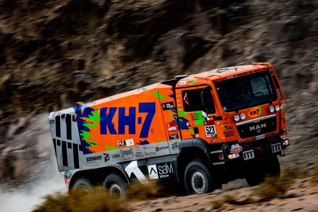 El Dakar más africano fuera de África está poniendo a prueba la resistencia, la tenacidad, las dotes y el trabajo en equipo del KH-7 Epsilon Team. La escuadra formada por Jordi Juvanteny, José Luis Criado y Xavi Domènech sigue adelante, imperturbable, después de una nueva paliza en la quinta etapa de la edición 2020 en Arabia Saudí, entre Al Ula y Ha’il, que han completado en la 26ª posición después de 7 horas, 9 minutos y 2 segundos de conducción y navegación sobre arena, piedras y dunas. El MAN 6×6 sigue líder de su categoría y es 21º en la general, a las puertas del top 20.