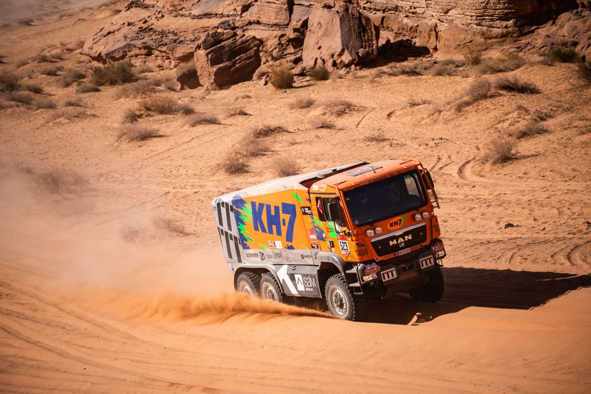 El Dakar más africano fuera de África está poniendo a prueba la resistencia, la tenacidad, las dotes y el trabajo en equipo del KH-7 Epsilon Team. La escuadra formada por Jordi Juvanteny, José Luis Criado y Xavi Domènech sigue adelante, imperturbable, después de una nueva paliza en la quinta etapa de la edición 2020 en Arabia Saudí, entre Al Ula y Ha’il, que han completado en la 26ª posición después de 7 horas, 9 minutos y 2 segundos de conducción y navegación sobre arena, piedras y dunas. El MAN 6×6 sigue líder de su categoría y es 21º en la general, a las puertas del top 20.