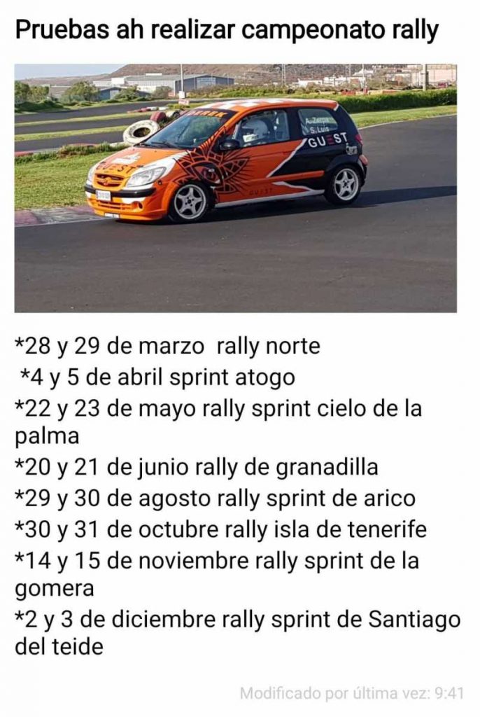El piloto tinerfeño Seven Luis ha confirmado en sus redes que estará presente en un total de ocho pruebas repartidos entre rallys y rallysprint con su Hyundai Getz. Cinco rallysprint, visitando las islas La Palma y La Gomera, y tres rallys, todo en Tenerife.