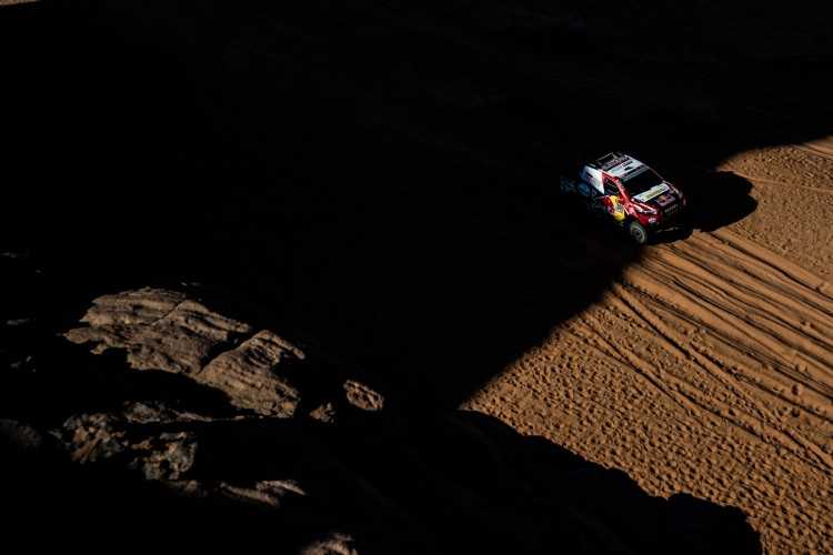 El nuevo formato de libro de ruta, entregado a los equipos minutos antes del inicio de la etapa, supuso que Al-Attiyah y su copiloto no pudieron conocer de antemano qué les esperaba abriendo la carrera y finalmente terminaron la etapa en segunda posición, a 2 minutos y 56 segundos de los líderes, una pérdida motivada en parte por un pinchazo en los últimos 100 kilómetros del día. Se esforzaron por minimizar la pérdida de tiempo pero aun así vieron que su brecha con respecto a los primeros clasificados de la general aumentó ligeramente, situándose ahora en 5 minutos y 59 segundos.