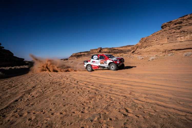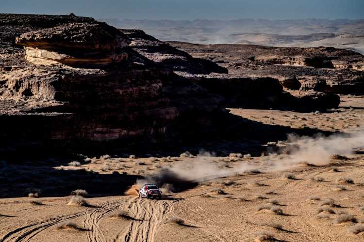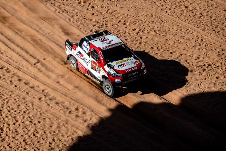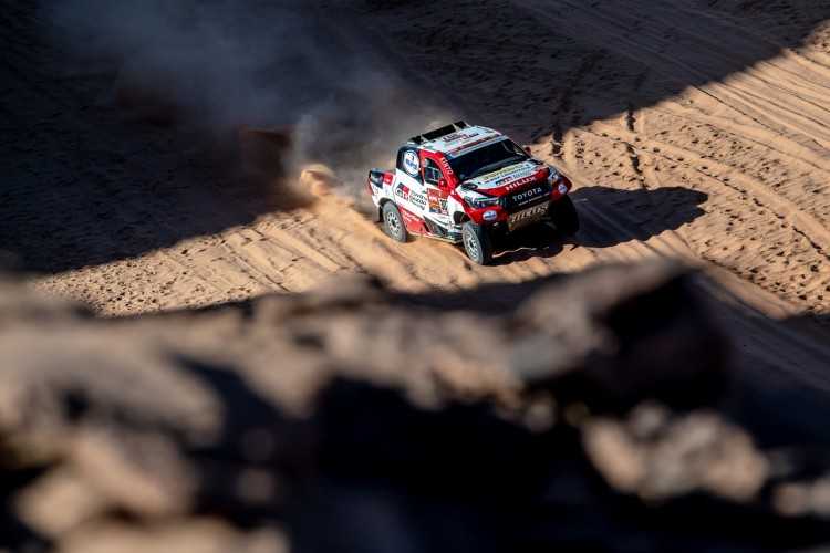 Nasser Al-Attiyah y su copiloto Mathieu Baumel lideraron el despliegue de TOYOTA GAZOO Racing al registrar el segundo mejor tiempo de la especial de 353 kilómetros a pesar de partir desde la segunda posición, prácticamente abriendo pista, tras el segundo puesto de la etapa anterior. Al-Attiyah y Baumel se colocaron en el primer puesto tras el pinchazo sufrido por el líder del Dakar pero no pudieron finalmente capitalizar esa ventaja.