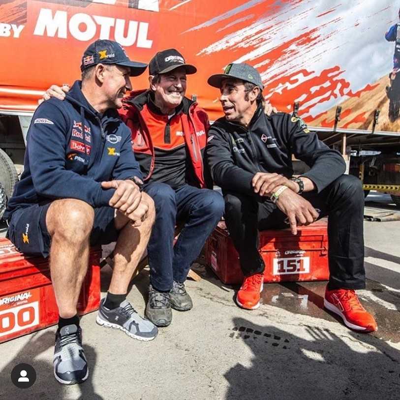 • “Nos hemos juntado Peterhansel, Hubert Auriol y yo, que somos los únicos que hemos ganado el Dakar en moto y en coche, y nos hemos hecho una foto simpática”