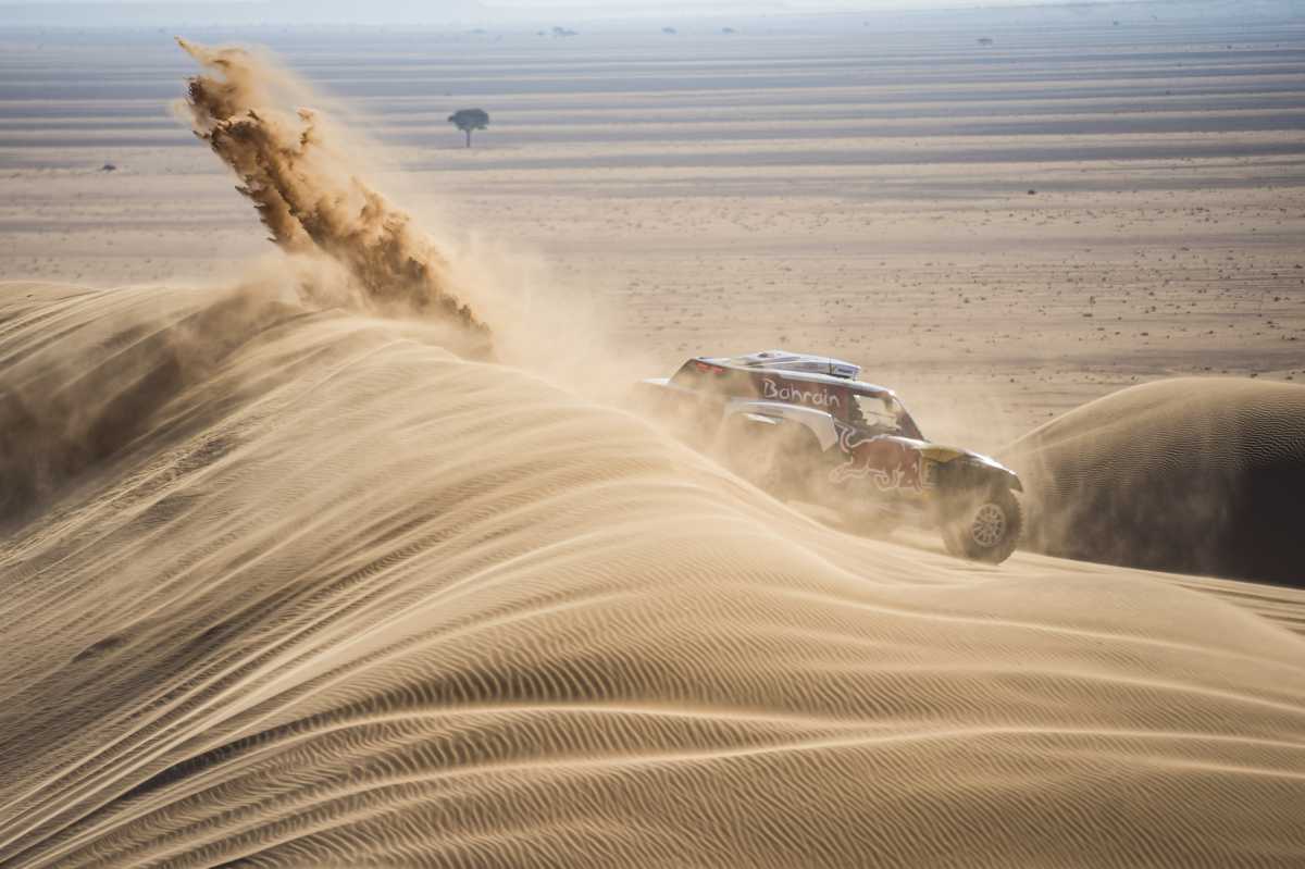 Golpe de autoridad de Carlos Sainz y Lucas Cruz en la séptima etapa del Rallye Dakar. Los pilotos del Bahrain JCW X-Raid Team, se han impuesto en la etapa más larga de la prueba superando en más de dos minutos al segundo clasificado en la jornada de hoy, Nasser Al-Attiyah (Toyota), y en cerca de tres minutos a su compañero de equipo Stéphane Peterhansel.