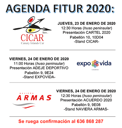 El Ayuntamiento de la histórica Villa de Adeje y el Comité Organizador del 30º Rallye Villa de Adeje, BP Tenerife – Trofeo CICAR se complace en comunicarles e INVITARLES a las actividades que se desarrollaráncoincidiendo con la Feria Internacional de Turismo (FITUR) en Madrid a finales del presente mes (23 al 26) y de acuerdo al siguiente programa: