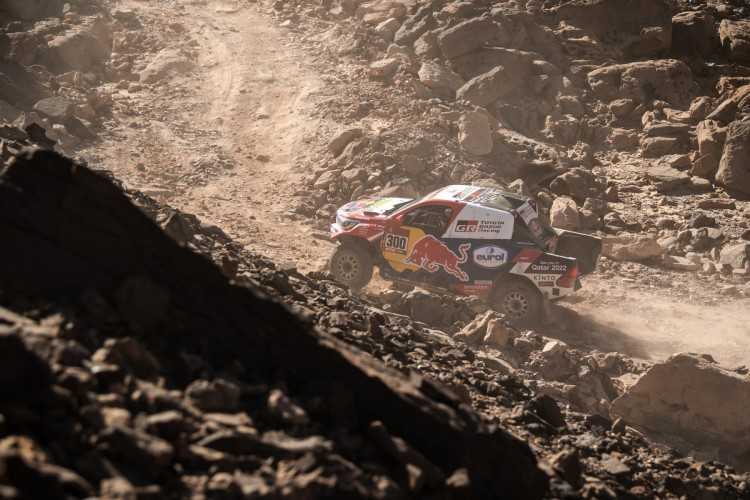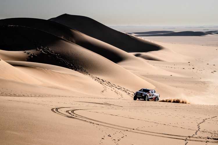 A pesar de registrar solo el undécimo mejor tiempo en la etapa, Nasser Al-Attiyah y su copiloto Mathieu Baumel lograron rebajar su desventaja en la clasificación general de 10 minutos a 6 minutos y 40 segundos. Al-Attiyah y Baumel tomaron la delantera al principio de la etapa, pero perdieron su ventaja después de quedarse atascados en las dunas. Su undécima posición inicial para la etapa de mañana, la novena del Dakar 2020, podría traducirse en problemas de visibilidad para los vigentes campeones a consecuencia del polvo que levantaran los coches que circularan por delante.