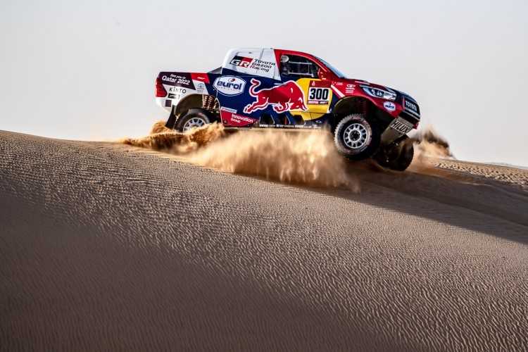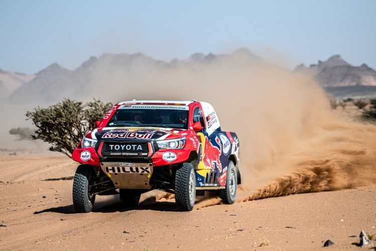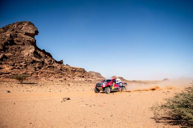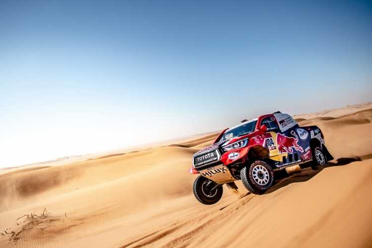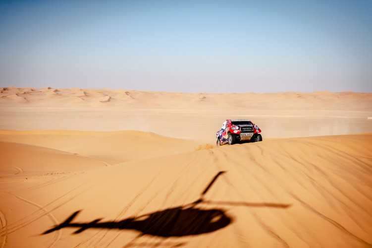 A pesar de registrar solo el undécimo mejor tiempo en la etapa, Nasser Al-Attiyah y su copiloto Mathieu Baumel lograron rebajar su desventaja en la clasificación general de 10 minutos a 6 minutos y 40 segundos. Al-Attiyah y Baumel tomaron la delantera al principio de la etapa, pero perdieron su ventaja después de quedarse atascados en las dunas. Su undécima posición inicial para la etapa de mañana, la novena del Dakar 2020, podría traducirse en problemas de visibilidad para los vigentes campeones a consecuencia del polvo que levantaran los coches que circularan por delante.