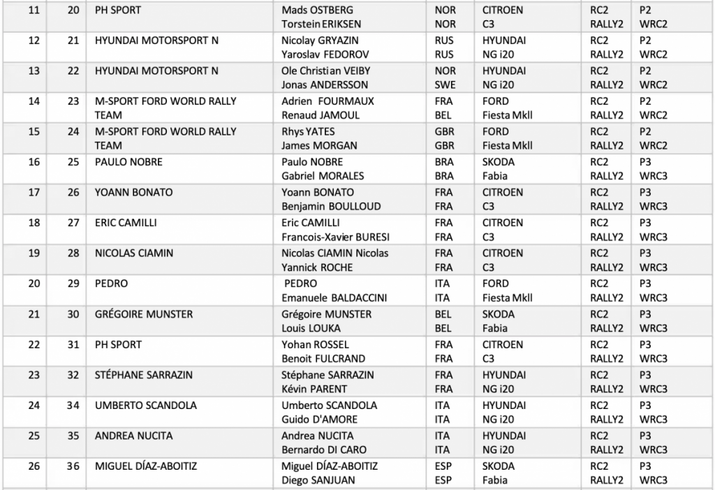 Ya está publicada la lista de inscritos del Rally de Monte-Carlo, primera cita del Campeonato del Mundo de Rallys 2020.