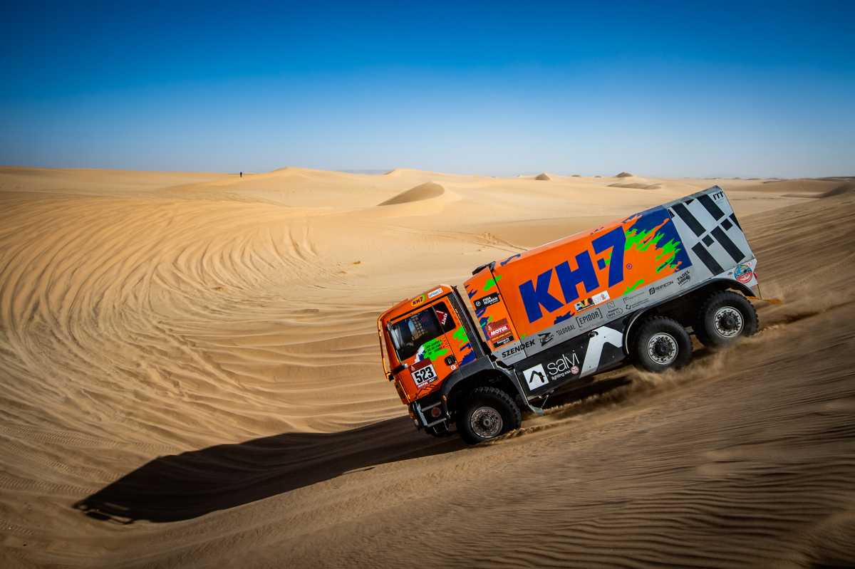 Con esos casi 900 kilómetros, la jornada era la más larga de todo el Dakar, pero la rapidez de la segunda parte de la especial, de 410 km, ha permitido a los tripulantes del MAN de tres ejes finalizar de nuevo con luz diurna, en 28ª posición, después de 5 horas y 8 minutos y medio de carrera. “La etapa tenía dos partes bien diferenciadas: una primera muy dura, con mucha piedra, que ha exigido un gran esfuerzo físico y ha comportado un importante desgaste de la máquina, y una segunda muy rápida, con dunas pequeñas, que hemos despachado a bastante velocidad”, describe el copiloto José Luis Criado.