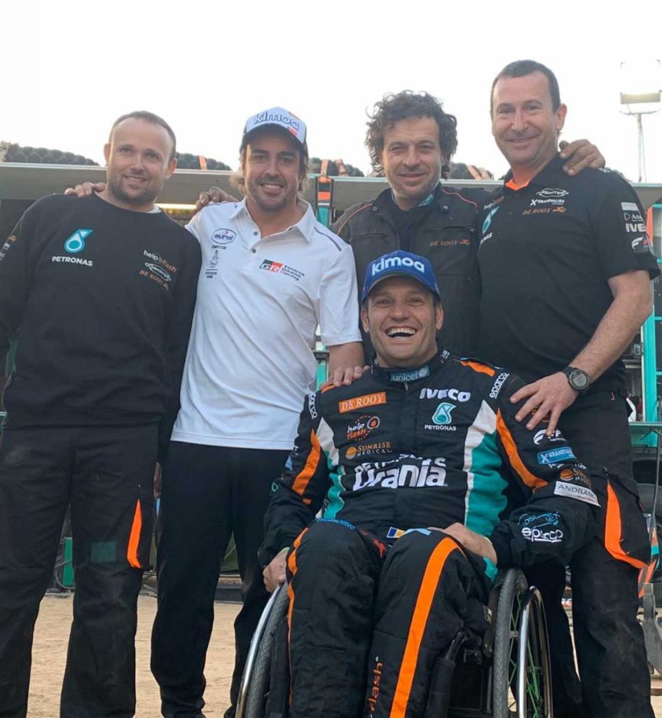 Parece que la visita de Fernando Alonso al final de la jornada de ayer ha sido un revulsivo para variar la dinámica de la etapa de ayer, así lo contaba Llovera: Recibir la visita de un campeón del mundo de F1, además de amigo, para interesarse de como va la carrera siempre es un plus para la motivación. Se subió al camión, se interesó de las sensaciones al volante de un aparato tan grande… Sin duda es campeón en todas las facetas.
