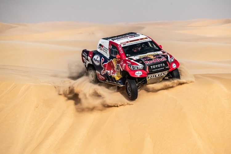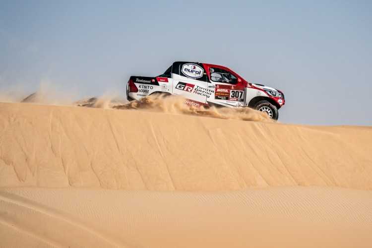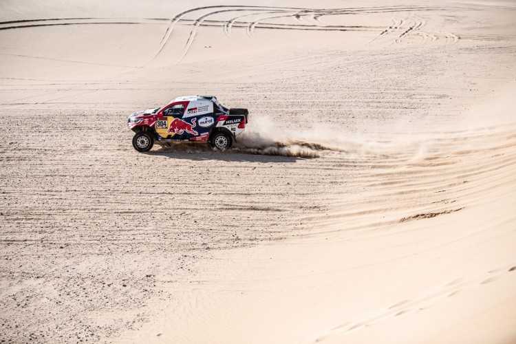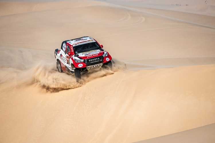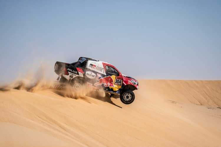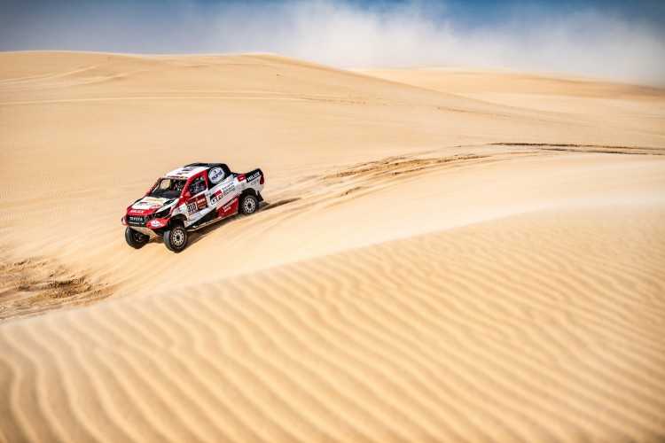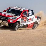 La etapa 10 del Rally Dakar 2020 fue todo un desafío para TOYOTA GAZOO Racing, con dos parejas de pilotos y copilotos perdiendo un tiempo valioso, especialmente en el caso de los defensores del título, Nasser Al-Attiyah y su copiloto Mathieu Baumel, que sufrieron con la navegación a mitad de etapa y entraron en meta 17 minutos y 46 segundos detrás de los vencedores. Fernando Alonso y Marc Coma, pr su parte, dieron varias vueltas de campana con su Toyota Hilux al poco de comenzar la etapa, de 680 kilómetros, al cruzar una empinada duna. Alonso y Coma salieron ilesos pero su coche sufrió diversos daños, entre ellos la rotura del parabrisas y varios componentes de la suspensión dañados.